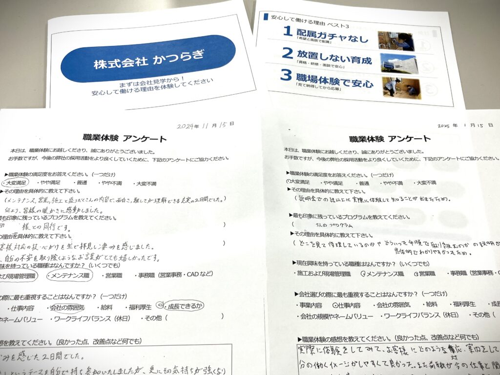 また、職場体験を実施した後には必ずアンケートをお願いしています。