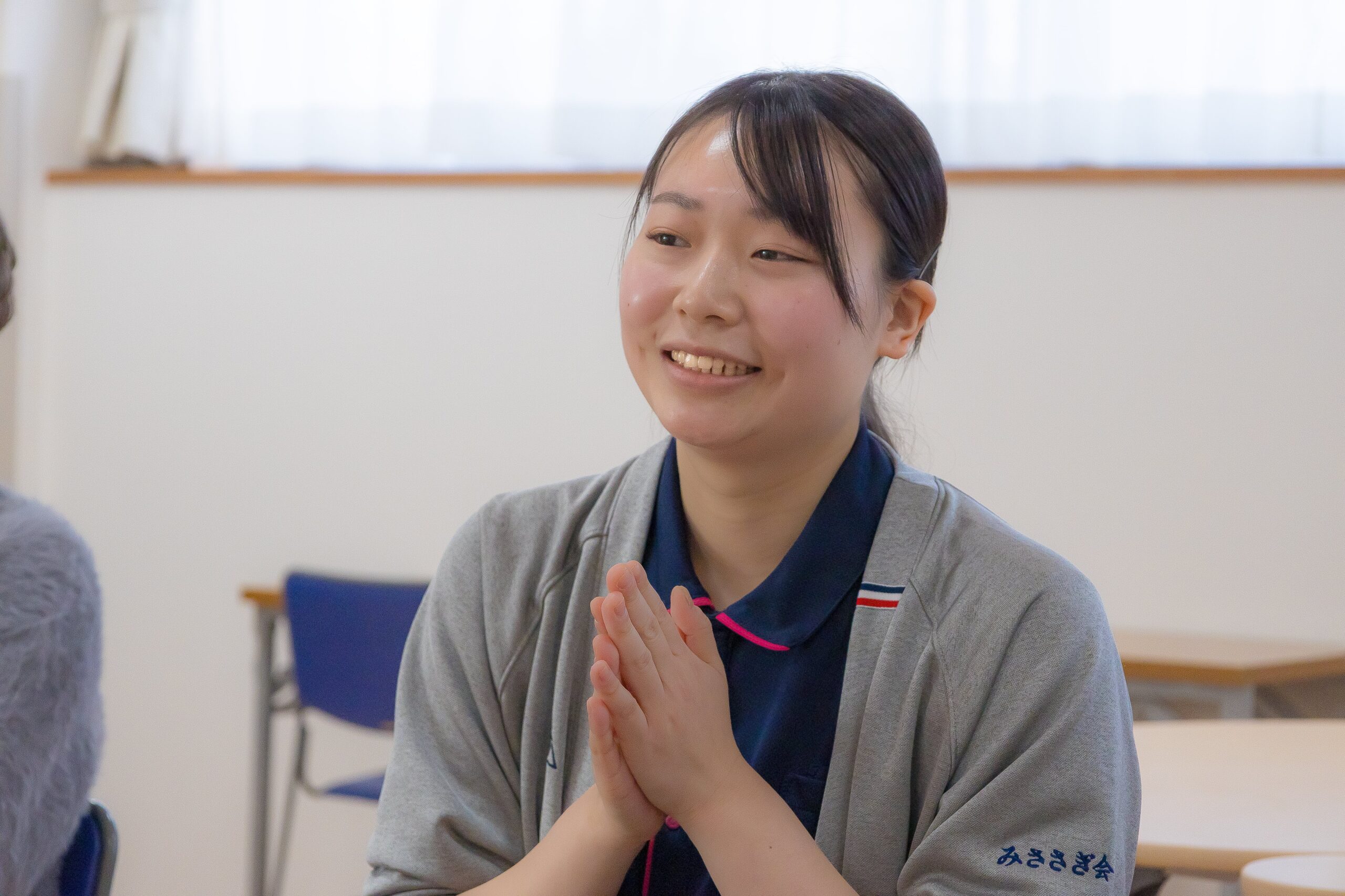 私は人見知りで、自分から相談するのが得意ではありません。そんな中でみささぎ会には「自分を見てくれる人がついてくれる」制度があると学校の先生に教えてもらい、安心して入職できました。